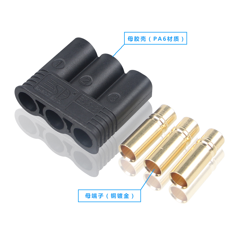 名稱:EC5三極連接器 香蕉插頭 航模插頭 8AWG線束定制